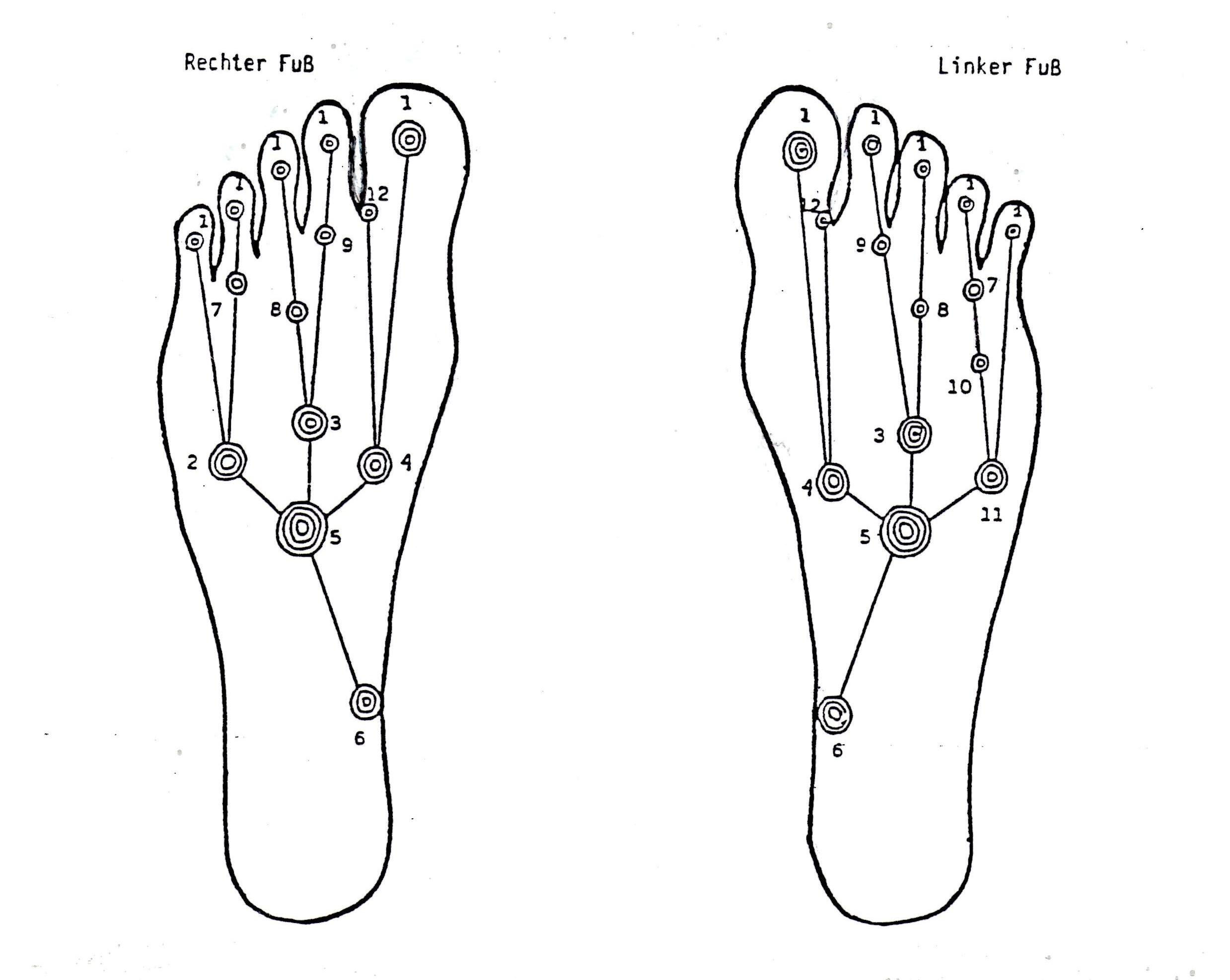 Die Chakras haben ihre Entsprechung an jedem einzelnen Zeh an der Fußunterseite. weitere Energiezentren befinden sich an der Unterseite des Fußes.